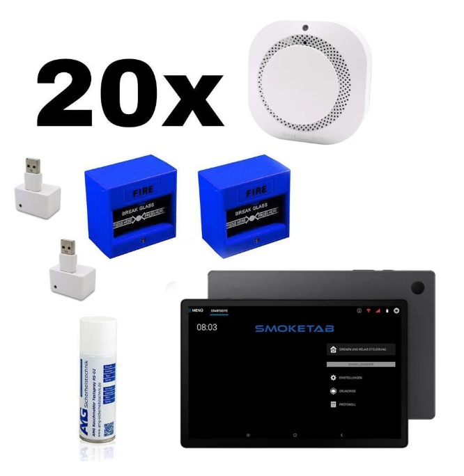 SmokeTab Brandmeldeanlage mit 20 x Funk-Rauchmelder